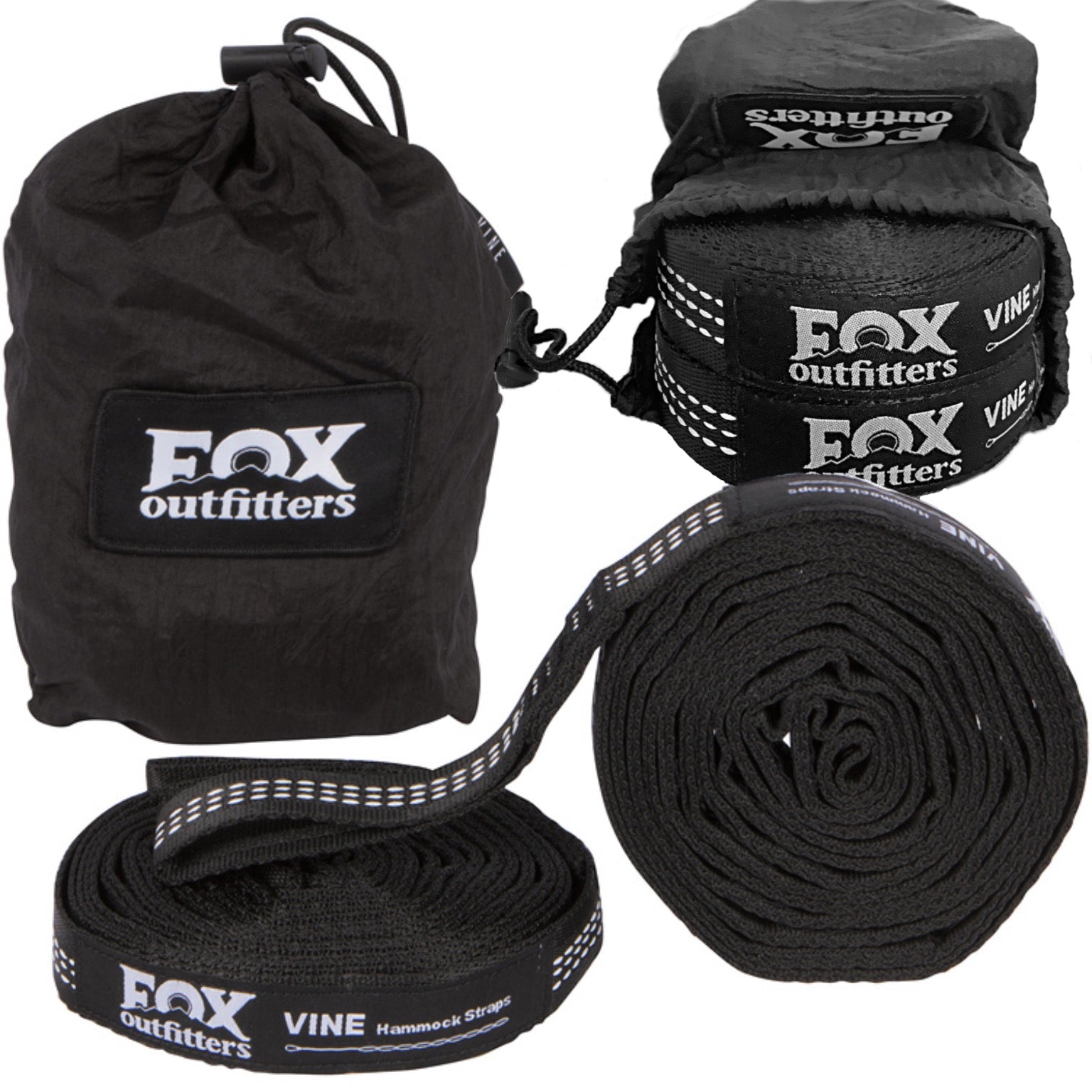 Featuring a daisy chain design, Vine Hammock straps can be used almost anywhere! Paired with a Fox Outfitters Hammock, you'll be ready to relax and enjoy the great outdoors. Low Stretch Polyester Webbing Max Weight 400lbs (200lbs per strap) 40 Combined Adjustment Loops Highly Reflective Night Glo Stitching.